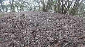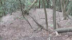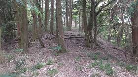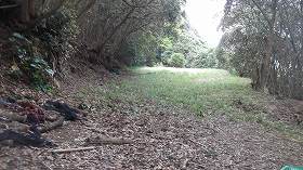 | 2郭から見た1郭。段差は1m未満の低いものである。 | 1郭南側下の堀切。 |
