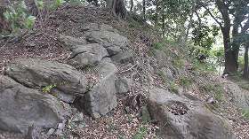 | 最高所の土壇状の部分を見上げた所。 | 1郭周囲にある石積みらしく見えるもの。 |