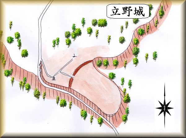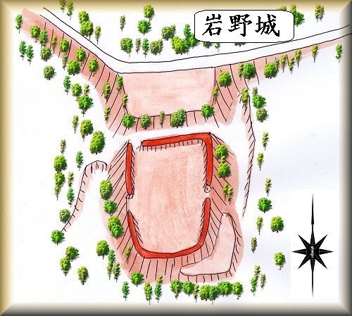 岩野城の後方にある土豪の城。山林化しているが、土塁、空堀が残るという。