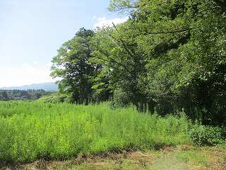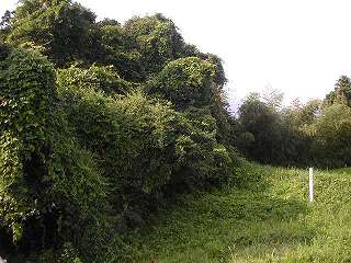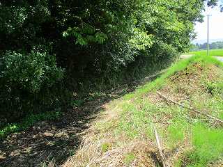この土塁は少し前の写真だと県道からも見えるくらいはっきり残っているようなのであるが、現在では写真の通りで、どこだかよく分からなくなっている。