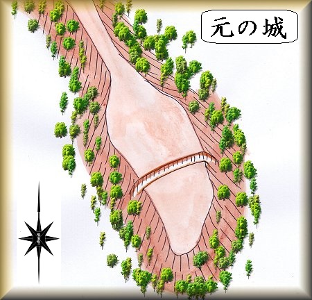城址は藪がひどく、夏ではどういう状況なのかよく分からない。すぐ北には「元の城」というのもあり、この3つの城は有機的に連結していたかと思われるが、詳しいことは分からない。