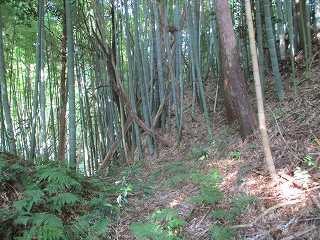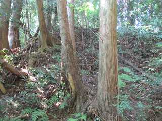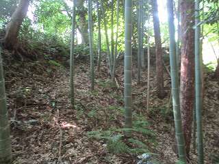 この先の山頂付近が城内ということのようなのだが、明確な区画は見られなかった。平場造成されていることは間違いないようなのであるが、城郭的な区画を思わせるものは少ない。