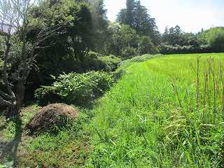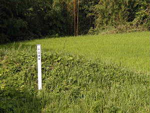 遺構が残っているのかどうか分からないが、周囲の水田は一段低くなっており、この水田が堀の跡である可能性は高いだろう。