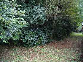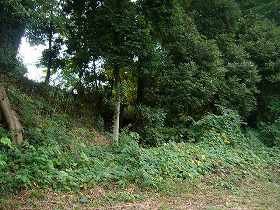 | 幸谷城の東側の土手を下の腰曲輪のような平場から見たところ。 | 幸谷城の西側の堀跡と思われる部分。 |