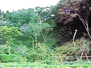 主郭の中心部あたりを西側の下からみたところ。主郭部は山林化している。