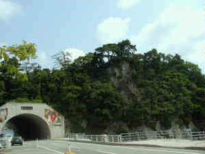 | 北方から遠望する城ヶ鼻。 | 北側にある灯台への入口。 |