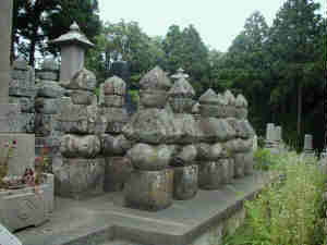 これが殿墓。古い五輪等がたくさん並んでいる。この写真奥の方にも古いのがいくつもある。たくさんありすぎて、どれが久知本間氏の墓なのかさっぱり分からない。が、まあ、この辺りなのかな。こういうのもきちんと案内をつければ観光資源になると思うんだけどなあ・・・・。