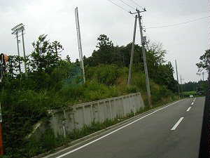 野球場の脇に残る土手。手前の道路は堀跡だと思われることから、土塁の名残であろうか。改変がひどすぎてなんだか分からん。別にここに野球場を造らなくても、他にも土地はいっぱい余っているだろうに・・・・。