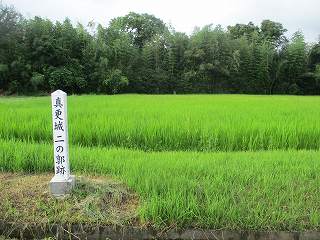 城内は広大な水田地帯となっており、台地との間を区画していた堀は消滅してしまっている。それでも水田の前に「真更城本郭」「真更城二の郭」と書かれた標柱が立てられており、城が2郭構造であったことを示している。