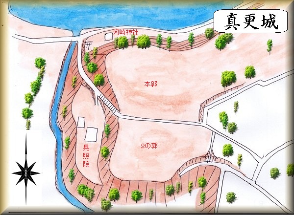 右の写真は以前に、河崎城と思っていた場所であるが、これは真更城であった。
