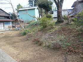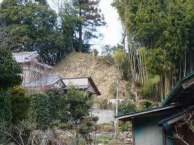 この辺りは耕作化で改変されている可能性が高いのだが、通常は堀を掘るところである。1郭の南西側にも土塁が残っている所があり、ここには何かの祠が祭られていた。