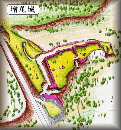 (以前の記述)増尾城は相馬氏の城で、現在増尾城址公園として整備されている。直線連郭式の城で二郭があり、戸張城や根戸城と似た構造をしているが、ひとまわり小さく、中世武士の居館といった規模である。一郭と二郭の間を土塁だけで分けているのは珍しい構造である。堀の深さは4mほどあり、結構深い。 |