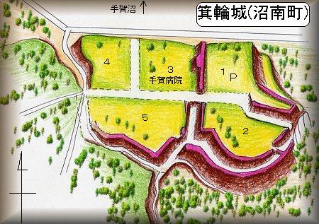 3,4の郭は病院の施設が建っているために、かなり改変されてしまっている。しかし測量図などを見ると、図のように郭が配置されていたようである。