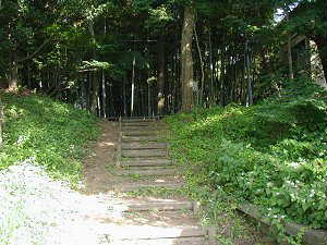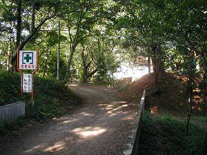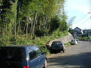 | 用替の台地。台地上は宅地化が進んでいて、遺構らしきものがあるのかどうかもよく分からない。 | 台地に上った辺り。左側の土手は、かつての城塁の名残なのかもしれない。 |
