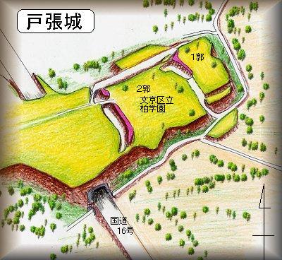 戸張城は国道16号線の戸張トンネルの真上辺りにあり、現在は文京区立柏学園の敷地となっている。