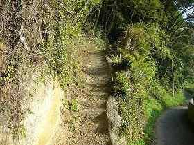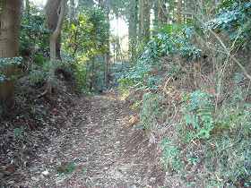 | 実際には寺院はなかったが、墓地だけは残っていた。 | 砦Uに上がる道。台地上には墓地があるために、道が付けられているのである。 |