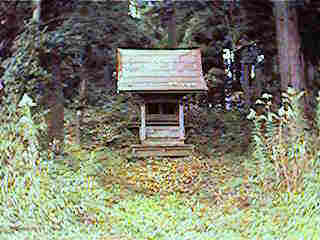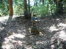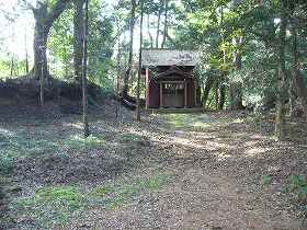 | (以前の記述) 小川城は、小川の集落の背後にある比高20mほどの急峻な台地上にあった。この台地の上は「御城内」と呼ばれている。すぐ脇の台地の途中に写真の「小川神社」と呼ばれている、 半ば荒れ果てた神社が存在しているが、これは妙見様を祭ったものらしく、小川城は千葉氏関係の武将の城であったと思われるが、城主等については未詳である。 この辺りは山に囲まれた秘境のような土地で、道は細く、車を走らせるのも大変である。城址には土塁が残っていると言われる。 |