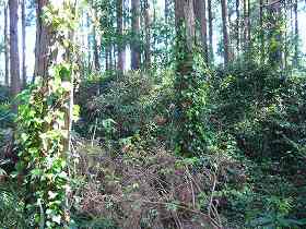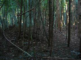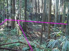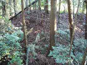 | Aの部分の城塁。自然地形のままである。 | Aの南側の堀。 |