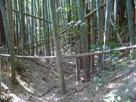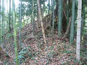 | 3郭に入る虎口。 | 2郭の土塁を内側から見たところ。郭内の方が低いため、土塁の高さは4mほどもある。 |
