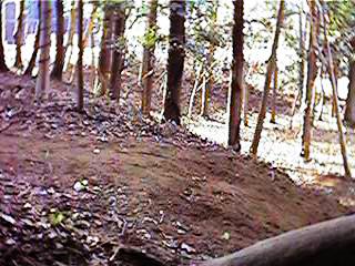 | Aの塚状の部分。古墳なのか、それとも櫓台と見るべきか。 | 南側辺りから西下の道路に降りていく切り通しの道。 |