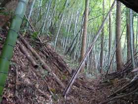 *この城は山麓のお宅の所有林となっているので、訪問の際には断ってからあがる方がよい。特にタケノコの時期には無断で入らない方がよいであろう。李下に冠を正さす、である。