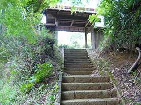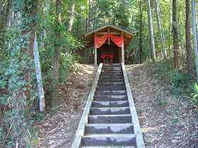 | 長福寺の登り口。この寺院の東側背後の山が砦Vとなっている。長福寺は居館区のようなものであったろうか。 | 砦Wの諏訪神社。 |