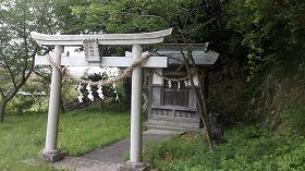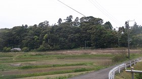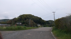| 南側から見た城山。比高30mほどなので、それほど高くはない。 | 西南下にあった八幡神社。この辺りから取り付いてみた。 |