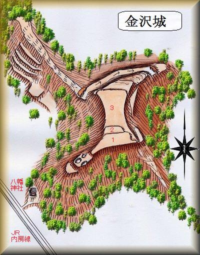 久保郷の東端に「城山」と呼ばれる比高40mほどの山稜がある。現在ここは、オレンジ村オートキャンプ場となっている。ここは有料施設であるために、内部の探索はしていない。充実した遺構を有する城址であるなら料金を払ってでも内部探索をするところなのだが、そうではなさそうなので、どうしても入ってみようとは思えない。したがってラフ図は『安房の城』の図面に拠ったものであるに過ぎない。