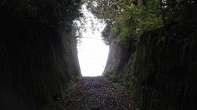 | 1郭西側にある岩盤堀切。 | 4の鞍部にある畑。 |
