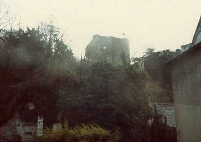この城は中世に廃城となったまま、放置されている。廃墟という感じだ。この四角い建物はドンジョン(天守閣)なのであるが、上部をかなり削られてしまっているという話である。 シェル河脇の台地上に建っている。