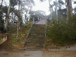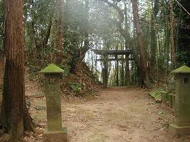 | お堂の背後にある堀切。「へ」の字型に折れている。 | 城の南端にある蘇羽鷹神社のあるところは物見台であったものだろう。 |