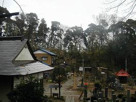 | 南側にある本埜村役場辺りから遠望した笠神城。比高12mほどの島状の独立台地である。 | 南陽院の入り口。寺院のある所は下からの比高5mほどである。 |
