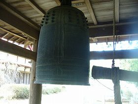 | 龍腹寺地蔵堂の脇にある鐘。南北朝時代の作であるという。 | 鐘堂の脇に残る土塁。 |