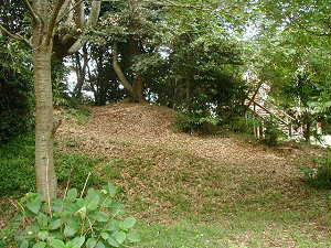 主郭の西端にある物見台と思われる土壇。上に金比羅が祭られている。