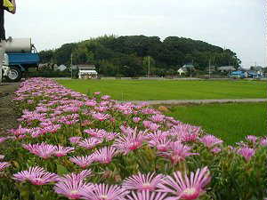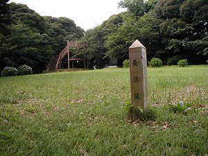 長沼城はかつての湿地帯・沼に囲まれた独立台地上に築かれている。主郭の周囲は土塁で囲まれ、北側に直径15mほどの櫓台があり、現在ここには小さな金比羅が祭られている。その横に展望台が設けられているが、周囲の木の方が高く、まるで景色の見えない展望台だ。意味がない・・・。木がなければかなり眺望はよいと思われるが・・。主郭の南側の下に腰曲輪があり、ここに稲荷神社がある。