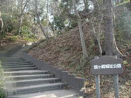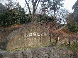 | 堀切のすぐ脇にある琵琶首観音堂跡。礎石が残っている。 | 南側から見た花輪城址公園。 |