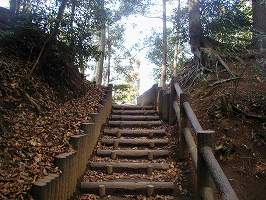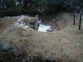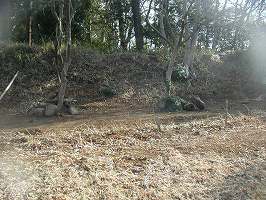 以前来たときには、名都借城には遺構はないものと思っていた。以前は南側の広寿寺の辺りが城址と思っていたのである。しかし、05.2.26(土)、千葉城郭研究会の合宿でこの城を再訪して、実は遺構が残されていると言うことを知った。しかし、中世城郭のものと言い切れるのかどうか、ちょっと悩ましい気もしないではない。