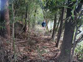 | 2の堀の現状。これを堀跡と見てよいのかどうか、現状ではちょっとためらいがある。 | 1郭東側下の囮虎口のようになっている部分。 |
