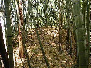(う)の櫓台。形状からすると、古墳のようにも見える。