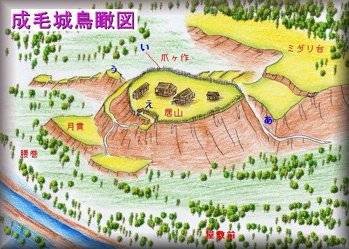 成毛城の南600mには三峰山砦、南西700mには東和泉城がある。この近接した城郭群とどのような関係であったのかが気になる所であるが、やはり主城と出城の関係と見るべきであろうか。