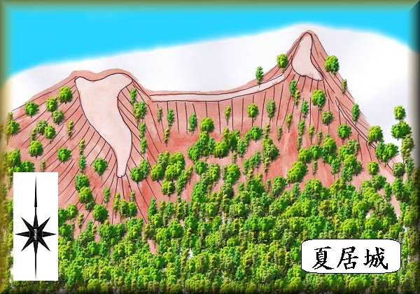| 素浜海水浴場の背後の山が夏居城。 | 2つの峰に2つの郭がある。 |