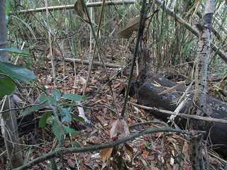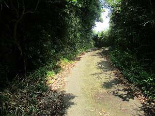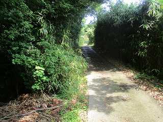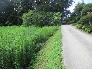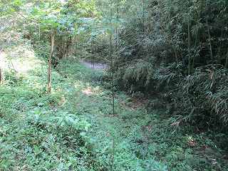 | 土塁上の道は長く続いている。 | 堀跡。 |