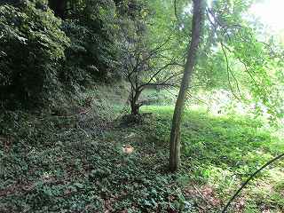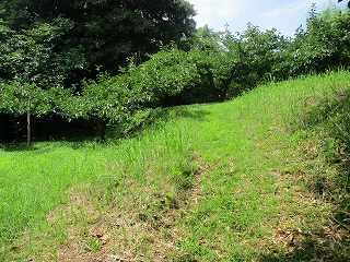 土塁の外側には堀があったと思われるが、堀は耕作化によってかなり埋められてしまっているように見える。
