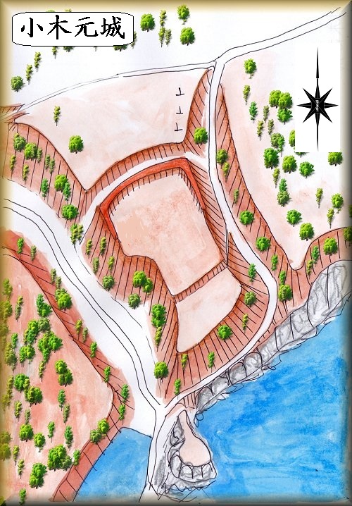 元城という名称が示しているように、小木城が築かれる以前の、この地の拠点的城郭だったものと考えられる。