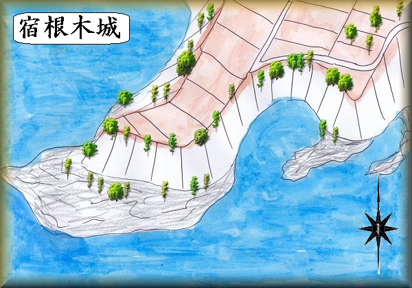 宿根木城は、南北朝期に木野浦代官本間氏庶子の館であったが、建武合戦で落城した後は廃城となった。