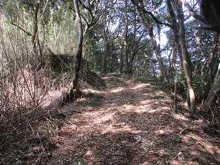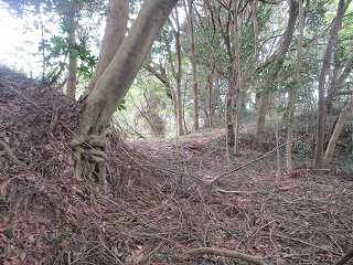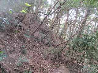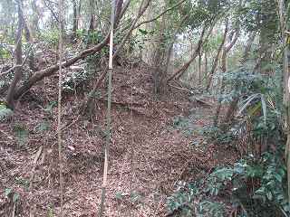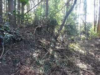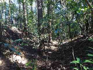 台地の南側は傾斜が急であったのか、横堀は一段だけである。横堀ではなく、単なる腰曲輪になっている部分もあるが、南側の部分は近年削られてしまったようで、削られる以前の本来の形状は横堀であったようである。