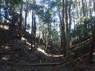 | 1郭堀と城塁。 | 南側の竪堀。 |