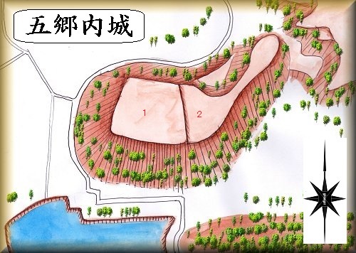 中央部の1が主郭であったものと思われる。ここに櫓台もあったのであろう。