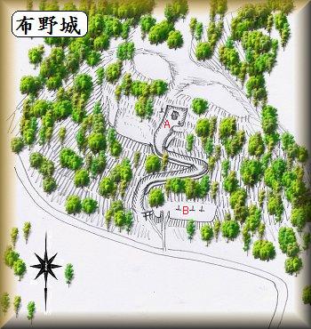 布野城は、水田を隔てて森山城の800mほど西、ちょうど向かい合うような位置にある比高30mほどの台地上にある。この台地は南から北に突き出た半島状のもので、山上には熊野神社が祭られている。