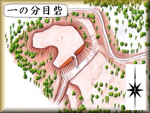 *一の分目砦の場所。 東側からの入口の場所。